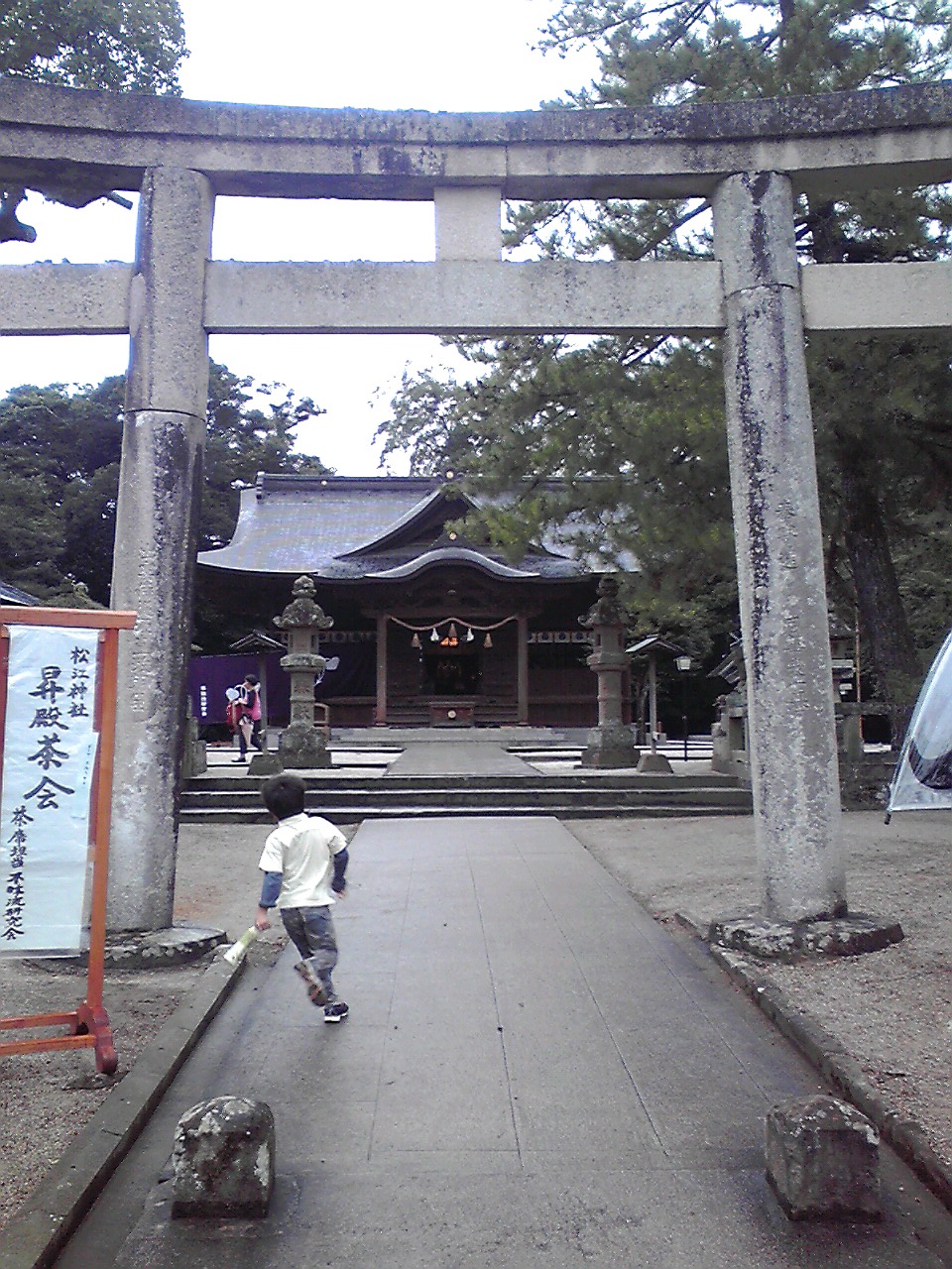 松江神社の鳥居をくぐり...